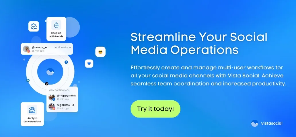FYI: Easily create multi-user workflows for enhanced productivity with Vista Social’s management tools! Create a free account today.
