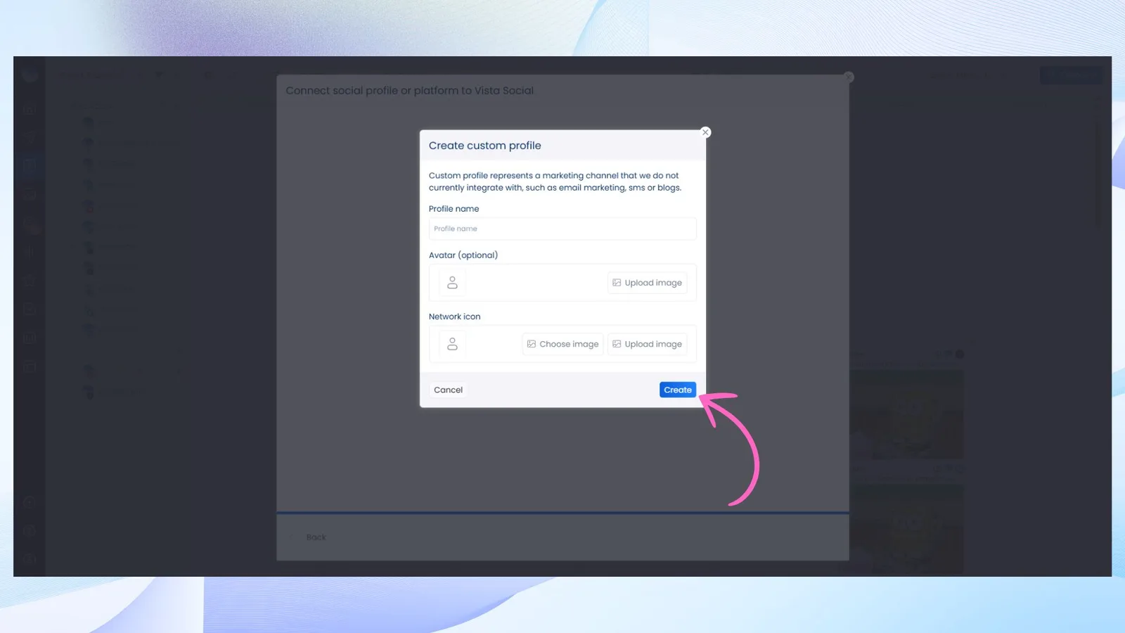 Note that Custom Profiles don’t directly integrate with external platforms. Therefore, they won’t automatically publish anything you schedule.