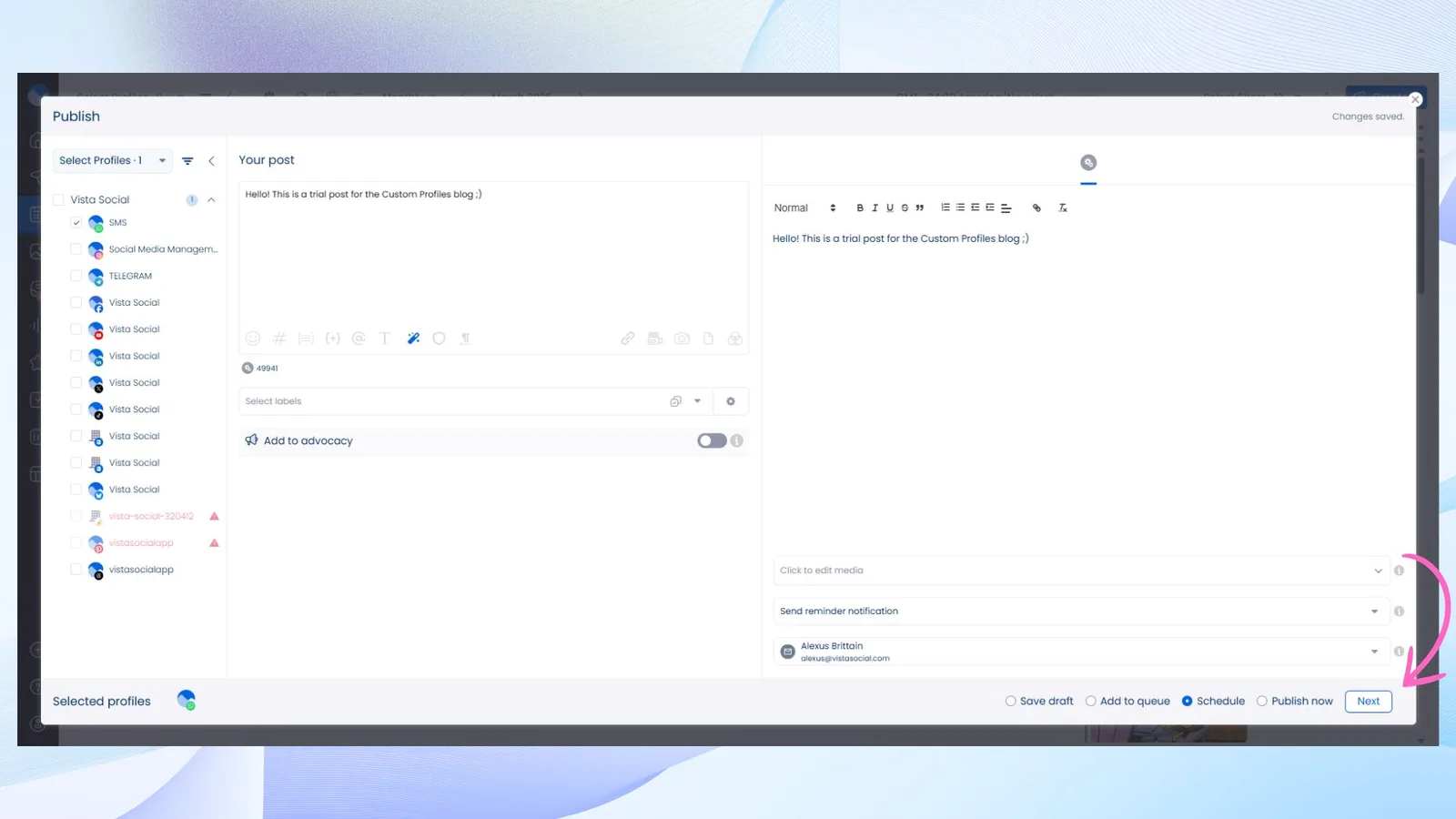 Ready to see the new calendar in action? Try Custom Profiles today and turn your Vista Social calendar into the marketing HQ you always needed.