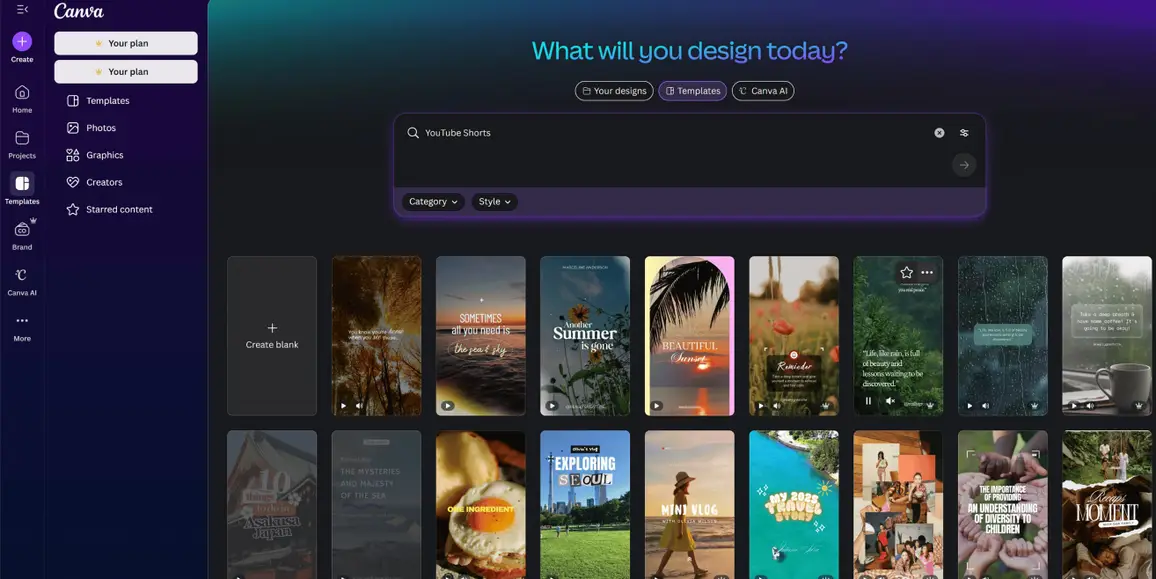 Go to Canva and enter “YouTube Shorts” in the search bar.
