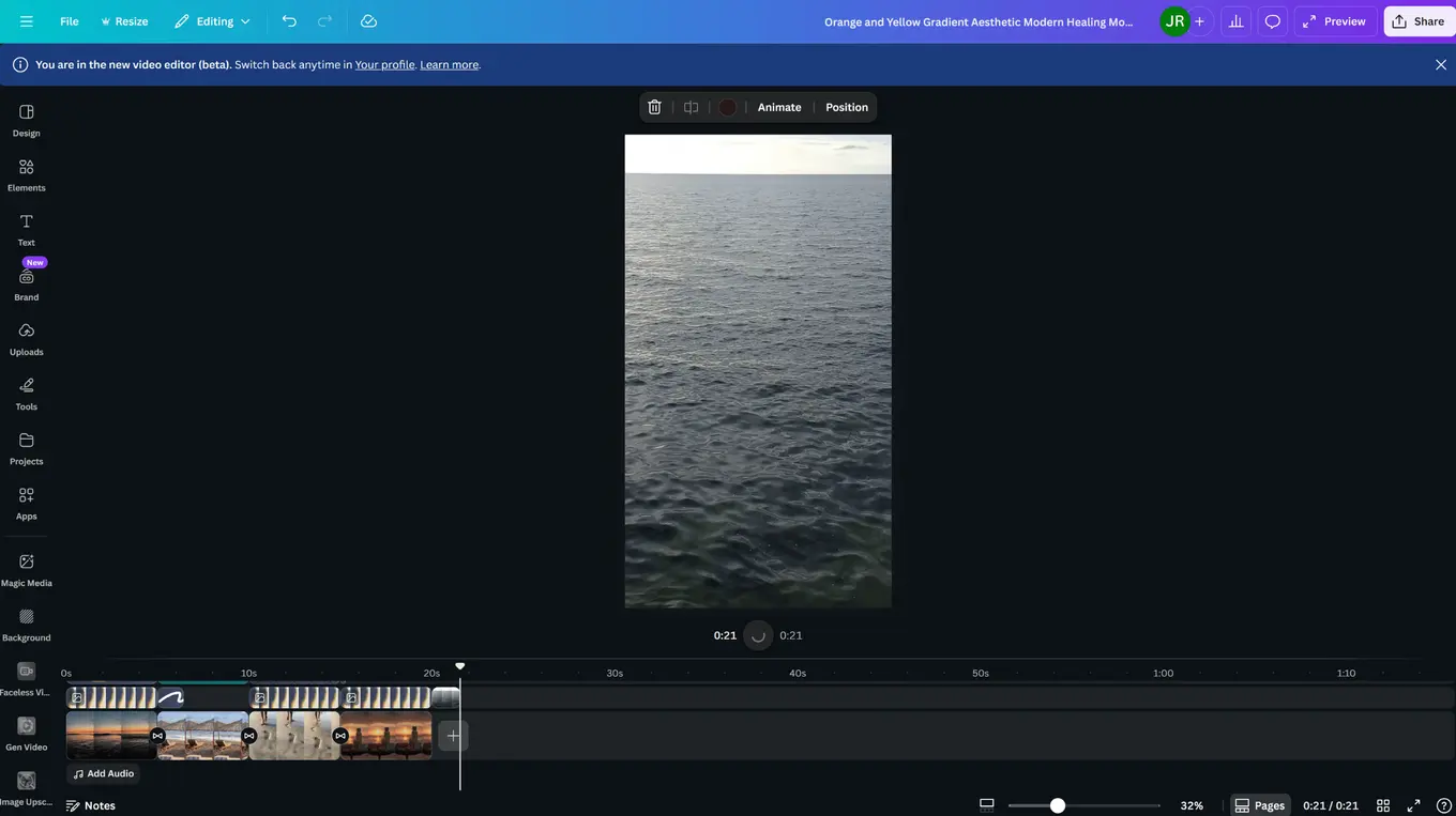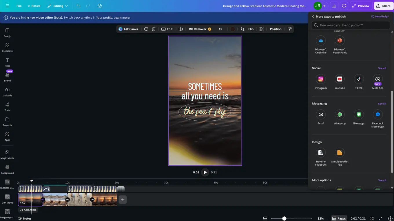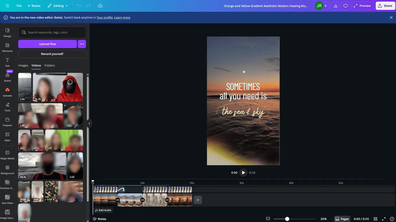 The best way to adjust your client’s video dimensions for YouTube Shorts is to use a video editing tool. For instance, Canva’s free video editing tool makes editing and creating YouTube Shorts videos quick and easy with these steps: