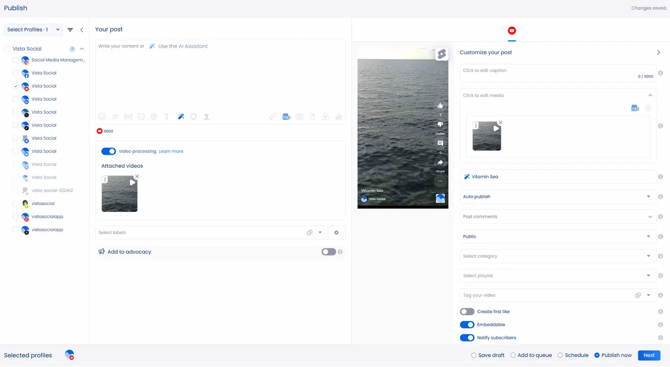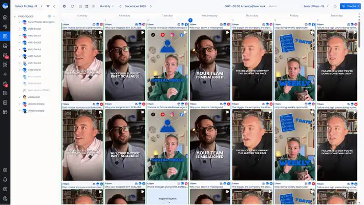 Knowing the right YouTube Shorts dimensions and sticking to them ensures your clients’ videos display correctly. It gives viewers a better viewing experience, giving your clients’ videos more views and engagement–or even getting you more channel subscriptions. Use Vista Social to manage your clients’ YT accounts and publish YouTube Shorts more efficiently.
