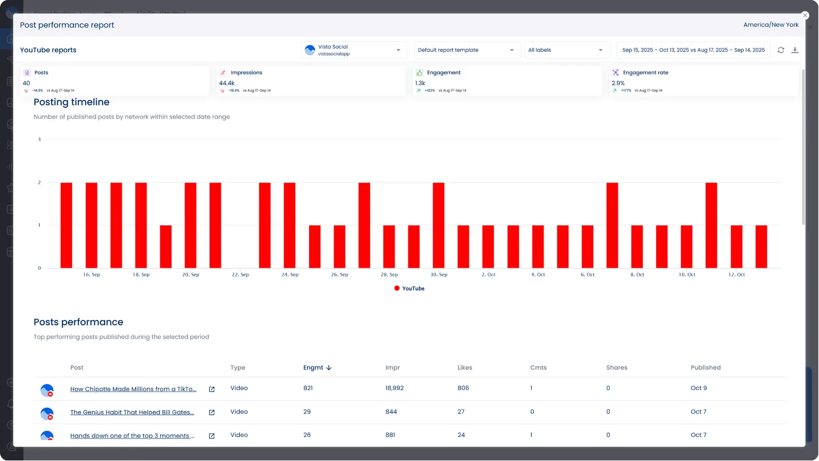 Every video stays on schedule and fits your brand’s style. If you want a simpler way to stay consistent and grow your channel, Vista Social’s YouTube management tools give you the structure and support you need.